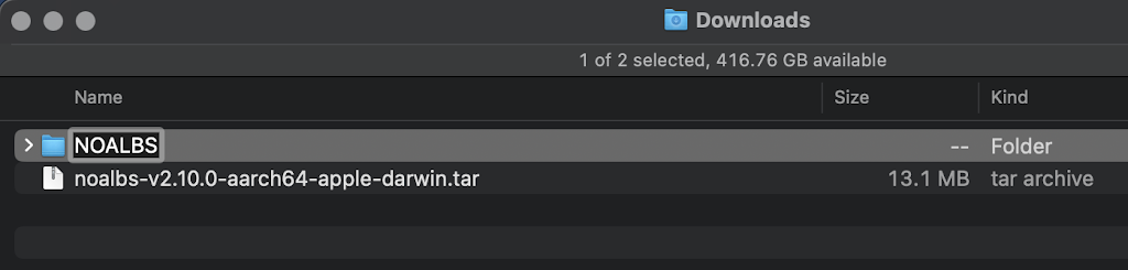 4.2.a – Download NOALBS for your System (it will be a .tar archive file in the Downloads folder). Double-clicking the file will unpack the file into a folder of the same name as the filename (without the extension). Rename that folder to NOALBS.