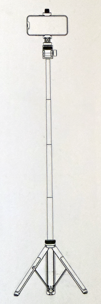 The following is what I have because I’m able to mount a peltier cooler onto the phone while still securing the phone to the holder. The tripod legs collapse into what is the handle while the aluminum telescoping stick extends the entire height to 62″ (157cm). The collapsed length is only 12″ (30cm). This stick also has a Bluetooth remote that can be paired to the phone (for triggering the camera shutter versus having to use the self-timer).