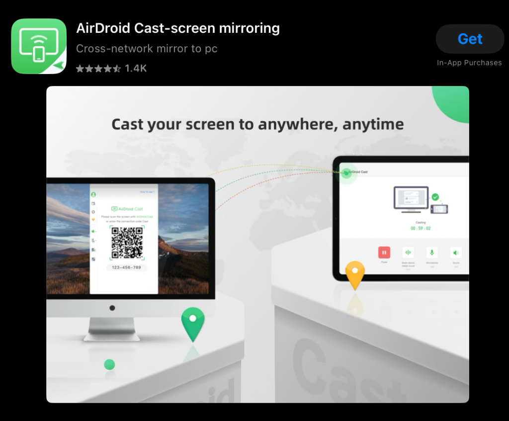 1) Open the App Store on the iPad/iPhone and search for AirDroid Cast. Tap the Get button to download it.