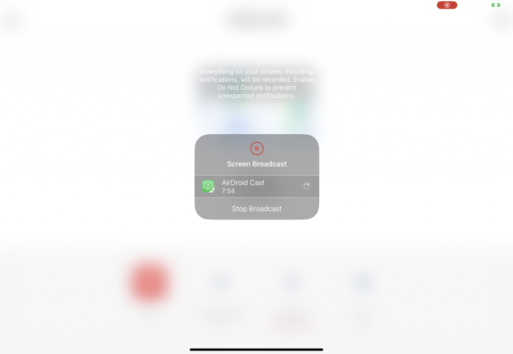 10) The iPad/iPhone display should eventually be mirrored on the desktop PC. The iPad/iPhone can now be used (you can switch away from the AirDroid Cast app on the iPad/iPhone and run other apps).