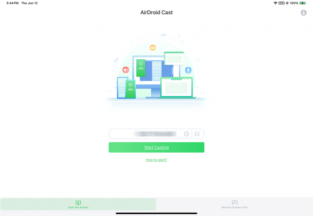 5) On the iPad/iPhone, run the AirDroid Cast app and either enter the numeric “Cast Code” or scan the QR code displayed on the Windows PC app in step 4 (above). Tap “Start Casting”.
