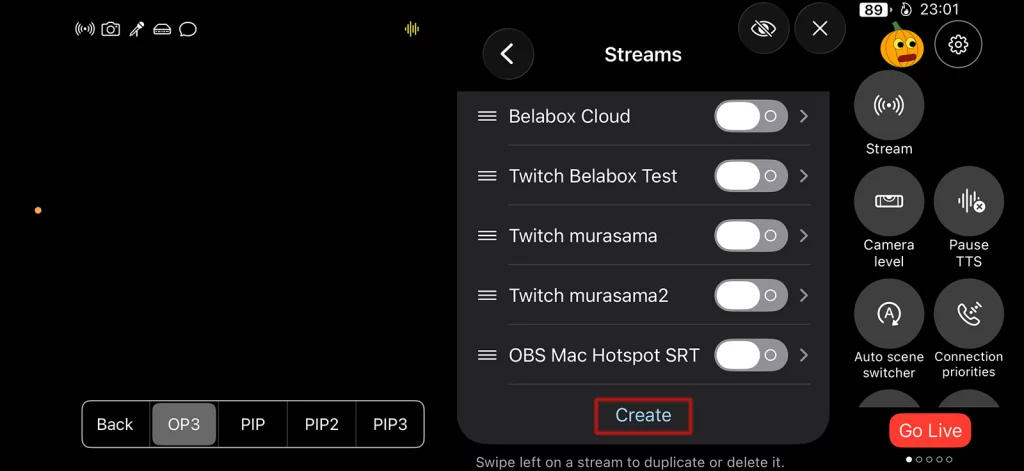 Step 1: Go into Settings (tap the gear icon on the upper right corner) and tap into Streams, and tap Create
